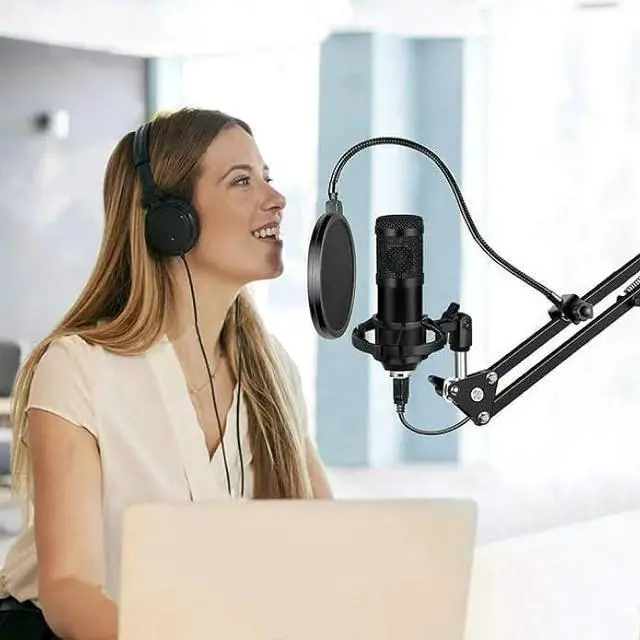 Professional Accessories IncludedEnhance your recording experience with our premium studio microphone kit. Complete with a sturdy scissor arm stand, double pop filter, and high-quality USB cable, this set has everything you need for top-notch sound production. (Keywords: studio microphone kit, scissor arm stand, double pop filter)