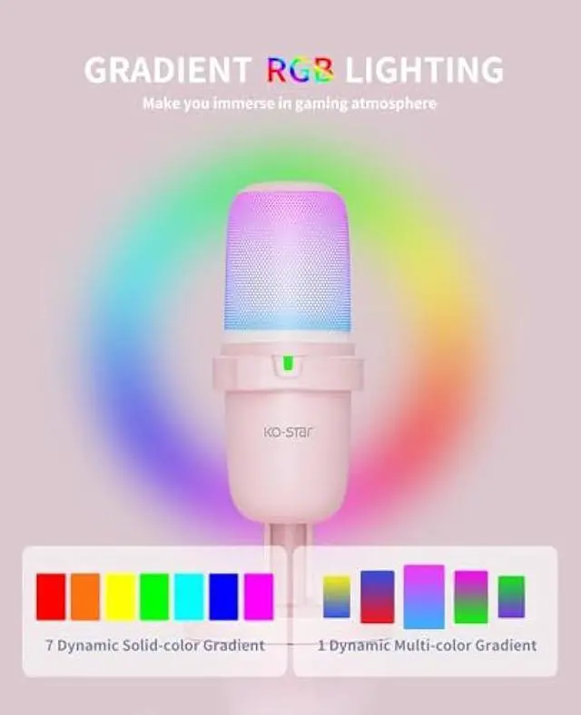 Colorful RGB lighting: The KO-STAR gaming computer microphone is equipped with RGB breathing LED lights, which can automatically change into multiple colors to create an ideal carnival atmosphere and make your gaming or live streaming effects more eye-catching. It can also visually display the working status of the microphone.
