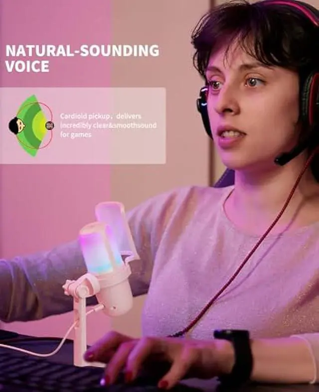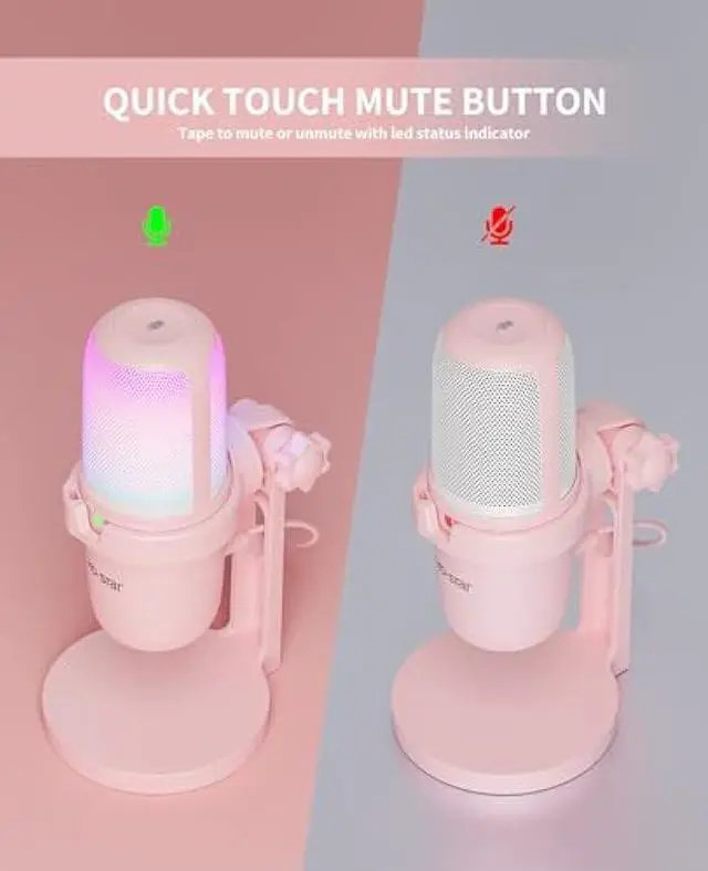 Compact size: This pink microphone gaming is compact in size and takes up only a small space to use, saving more desktop space. The pc pink live broadcast microphone will bring you a different experience