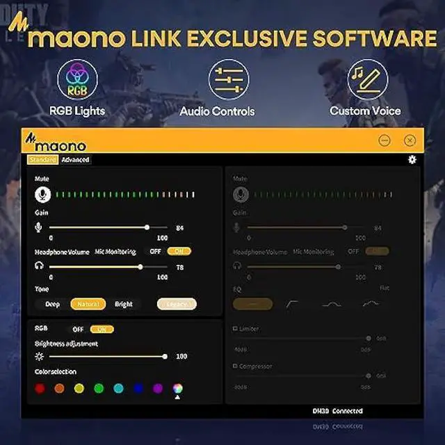 MAONO LINK Software: Maono link provides various simple audio settings, sound effects, RGB customization, and advanced audio settings. You can apply settings such as EQ, limiter, and compressor to customize your voice. Download Maono Link for extraordinary gaming and streaming experience