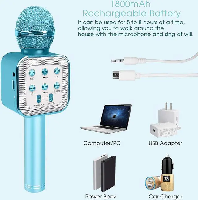 [Bluetooth Connection] The microphone is compatible with any Bluetooth-enabled device (version 5.0 ), including all iOS and Android smartphones and tablets. Multi-function buttons can adjust the Music, Echo, Volume, and mode. Connect to the music app (YouTube, Pandora, Spotify, etc ), you can practice a song, live stream, and share the favorite songs with your friend, enjoy wireless wonderful