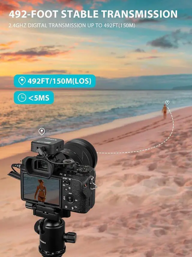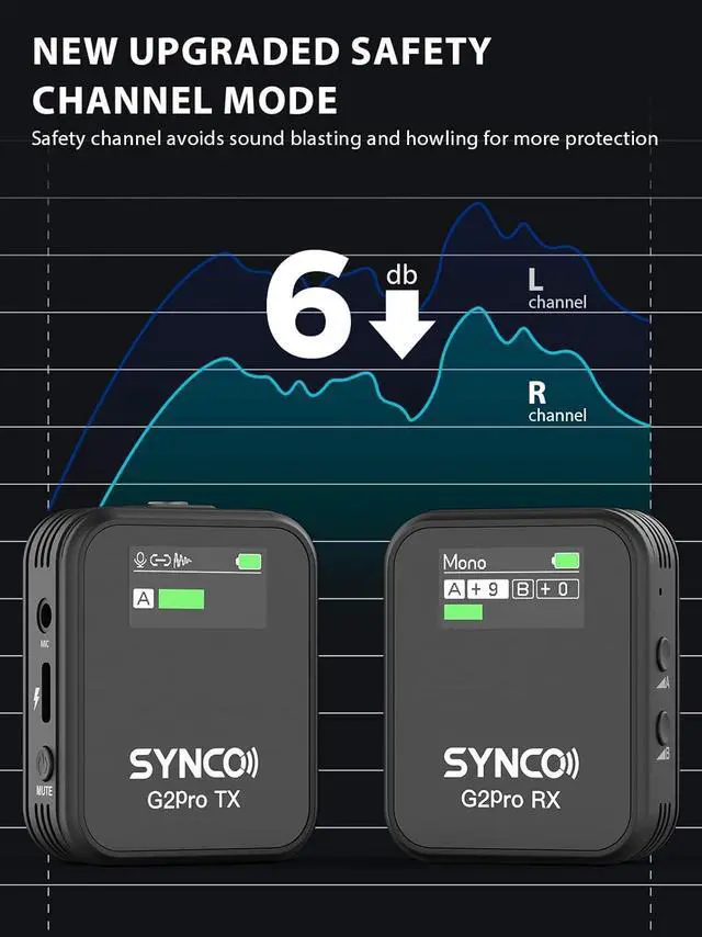 Digital 2.4GH z & Auto-PairingSYNCO G2 (A1) Pro wireless lavalier microphone features 2.4GH z frequency spectrum and Syncoder technology, which avoids confusing domain of UHF and offers a secure, stable and audio system. It supports automatic connection between TX & RX after power on and easy operations if you need manual pairing.