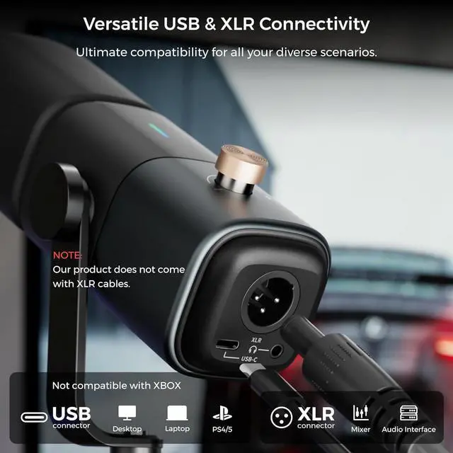 Connectivity]: This recording microphone supports USB connectivity for PC streaming and recording, as well as XLR connectivity for mixers and sound cards in vocal, podcast, or music creation setups. This versatility allows for easy connection to various devices. (XLR cable not included; when using the XLR interface, AM10Xs noise canceling, sound monitoring, and audio gain adjustment are not supported. However, these functions are supported with the USB interface. )