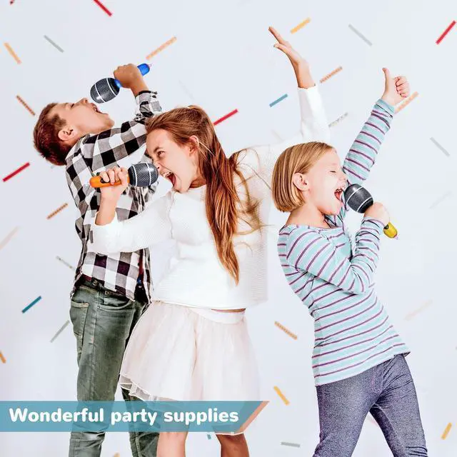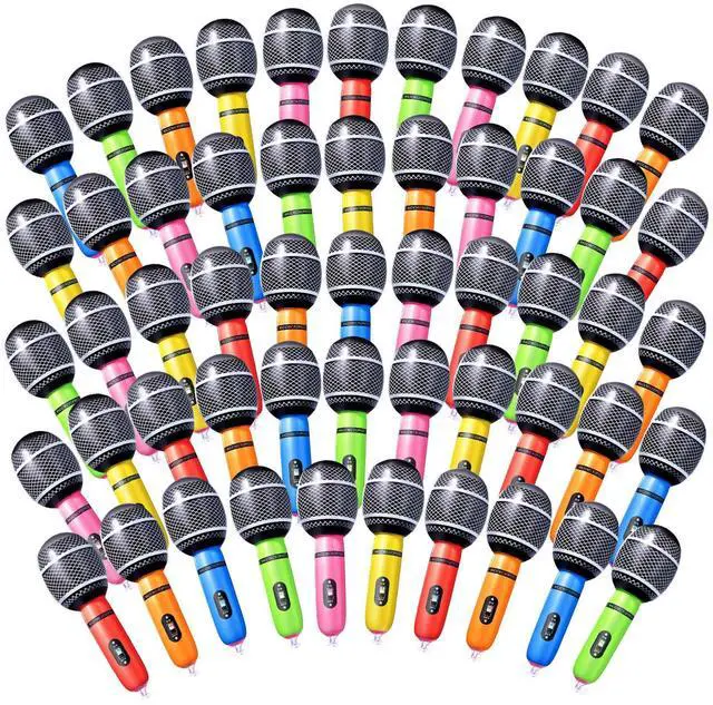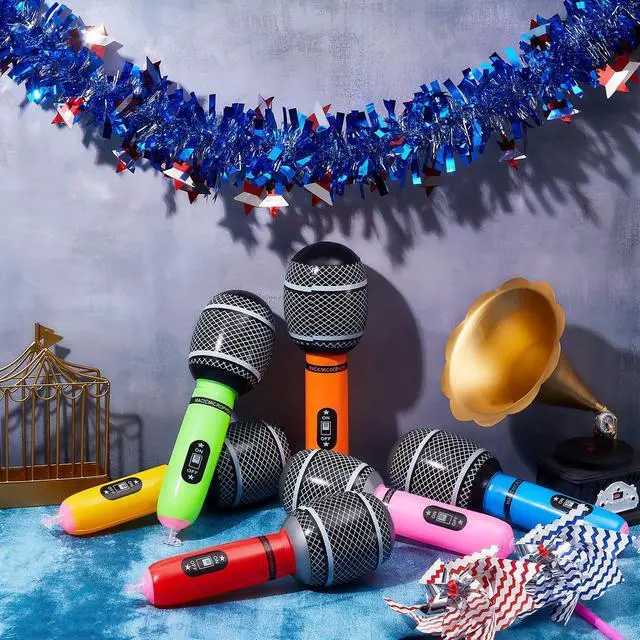 Features: Attractive party decorations: These blow up microphone props are cute and interesting decorations for your upcoming party. Their trendy design makes you have fun at the party carnival, and you and your friend will love it. They are also novel photo props to meet your requirements for beautiful selfies and pictures with friend. Multiple applications: This inflatable microphone toy is suitable for family concerts, birthday parties, rock parties, beach, camping parties, and is a nice tool to create a lively and joyous atmosphere. Specifications: Material: PVC Size: about 24 cm/ 9.45 inches long Color: 6 random colors Package includes: 72 x Inflatable microphones Notes: Please allow slight size errors due to manual measurement. Please allow slight color differences due to different displays. Please do not overfill them, and keep it away from anything pointed and heated.