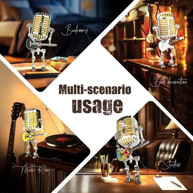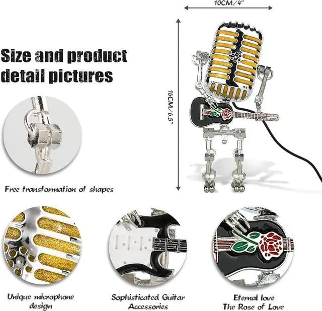 | Included Components | 1 * Vintage Microphone Robot Lamp with guita |