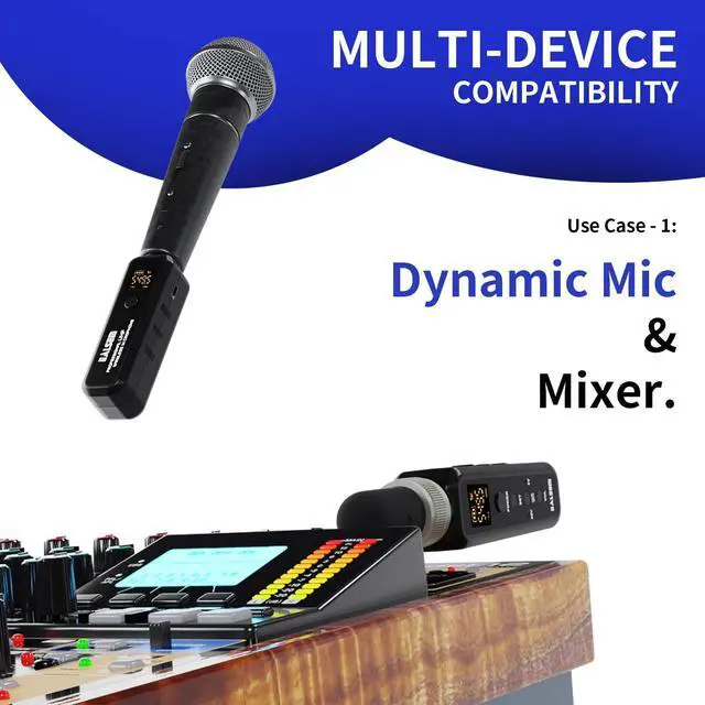Make sure that when the transmitter is connected to the device, the volume of the output device is low to avoid popping sounds. Please tighten the cannon clip ring of the transmitter, which can effectively avoid the noise caused by shaking.