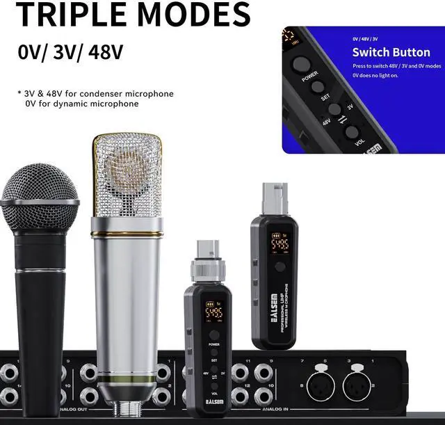 - 48V for phantom power vocal recording mic(Red light on the left)