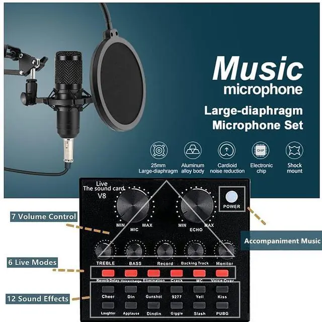 - aFeaturing a high-quality BM-800 podcast mic, an adjustable mic arm, a live sound card, and other studio equipment. The live sound card is another standout feature of this recording studio equipment, It offers superior sound quality and audio interface integration, making it easy to control and monitor your audio levels.