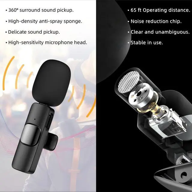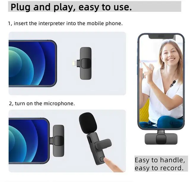 Wireless Lavalier Microphones for iPhone Android, Wireless Lapel Microphone with Lightning/USB-C Plug-Play, Clip on Mic for Video Recording, Interview, Podcast, Vlog, YouTube