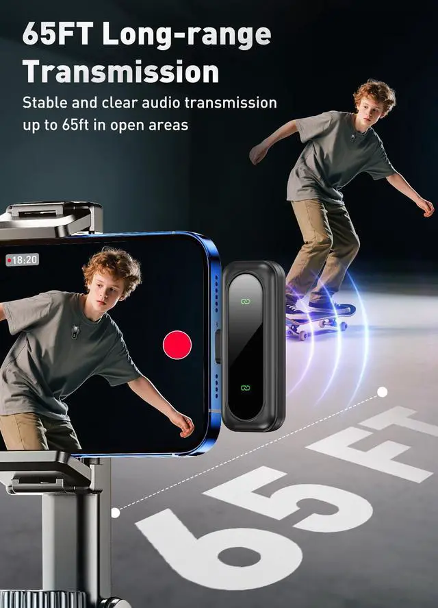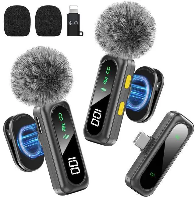 Enhanced Audio ControlThis wireless microphone delivers crystal-clear audio with professional-grade sound reproduction, ensuring rich bass and crisp highs for studio-level recording. The one-tap mute button allows instant silence during calls or recordingsideal for live streaming and confidential meetings. The receiver includes both USB-C and Lightning adapters, making it widely compatible with iPhone, iPad, Android, and more.