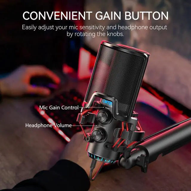 Zero Latency Monitoring - Equipped with a 3.5mm headphone jack, you can monitor your voice in real-time. Additionally, a microphone gain control knob allows you to easily adjust the microphone volume and sensitivity, ensuring optimal sound quality.