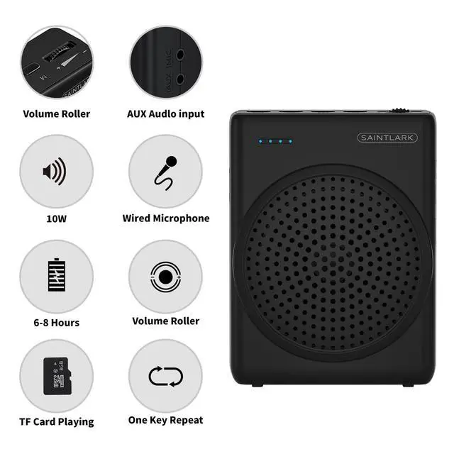 SAINTLARK S22 Voice Amplifier for Teacherswith Wired Portable Microphone and Speaker and Belt Supports MP3 Format Audio for Training,presentations, Guided Tours, Personal Voice Amplifier