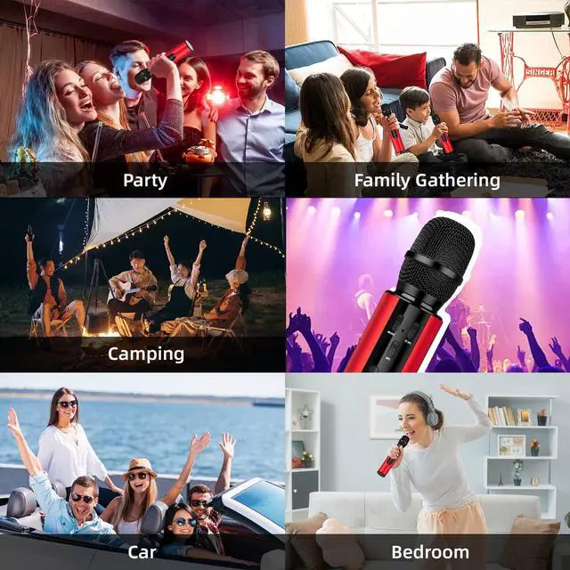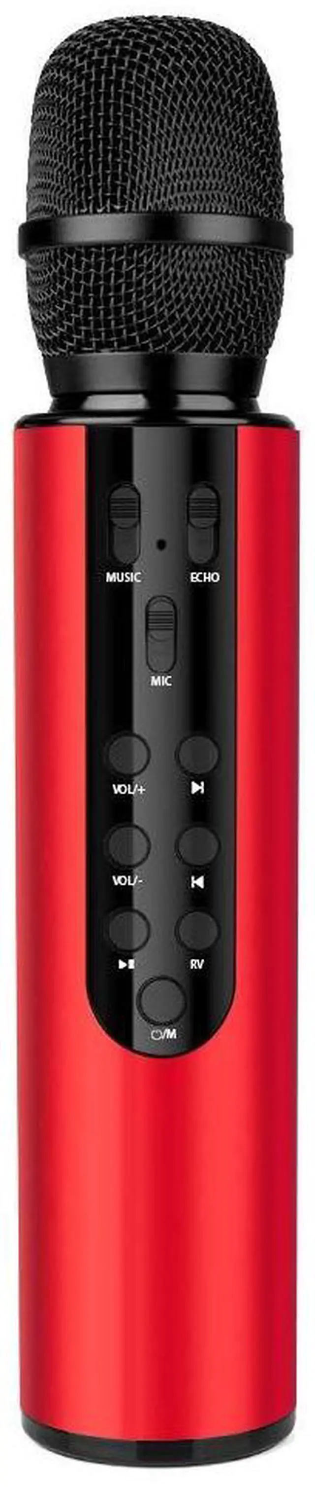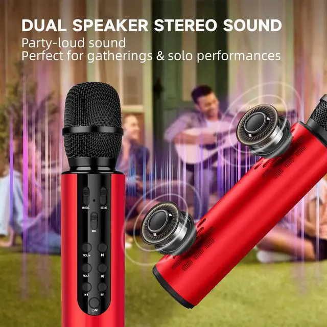 Bluetooth Wireless Karaoke Microphone, 4-in-1 Portable Handheld Mic with Built-in Sound Card for Home Parties, Travel, Music Recording, Car Singing (Red)
