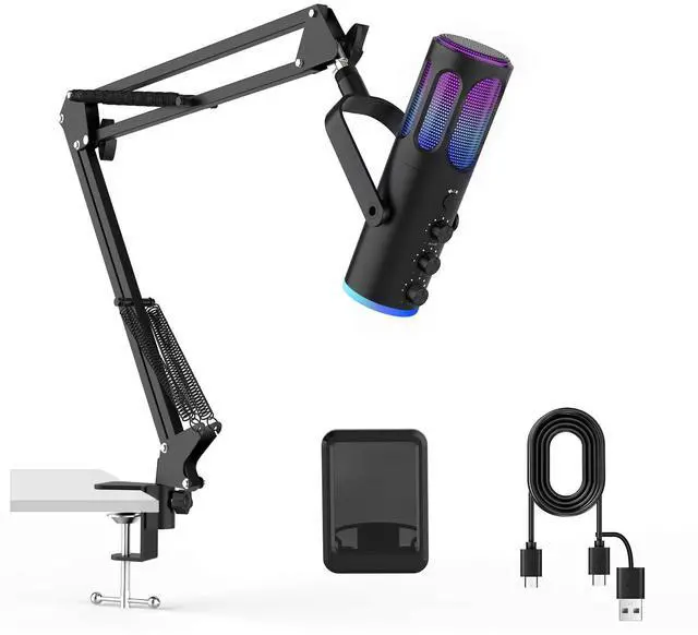 RGB and One-touch MuteCyclic RGB lights on the microphone for PC enhances your glowing rig for a carnival atmosphere, immersing you in the intense game arena.Immediately silence the USB microphone with a tap, preventing emotional outbursts to maintain a positive team atmosphere