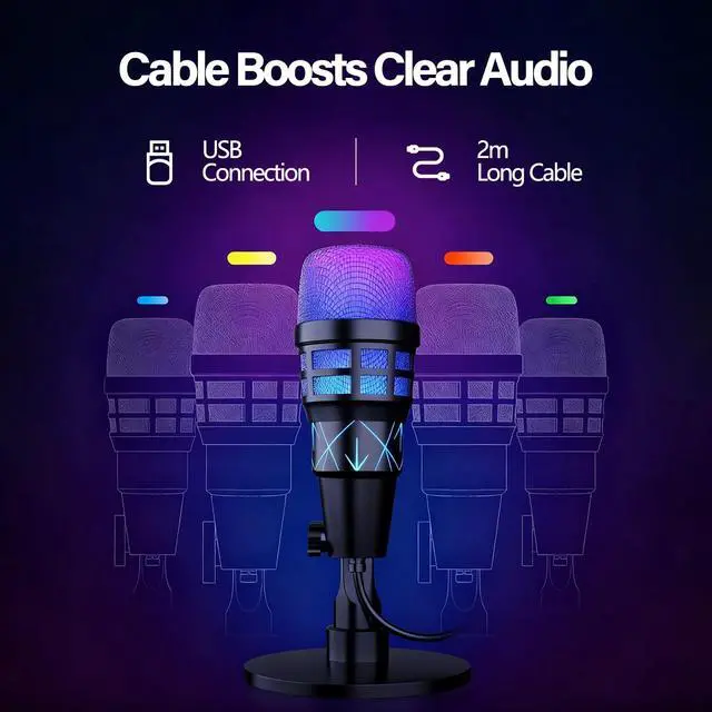 This microphone is an all-round tool for live streaming, gaming and recording. Its core advantages lie in "scene adaptability + sound quality stability". The gradient RGB lighting effect is in line with the aesthetics of live streaming and automatically turns off when silent to prevent misoperation. Touch one-click mute, real-time monitoring hole, bottom volume adjustment, efficient and convenient operation.