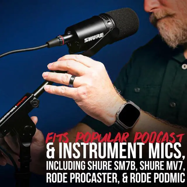Universal Mic Compatibility: Fits popular podcast and instrument mics, including Shure SM7B, Shure MV7, RODE Procaster, and RODE PodMic