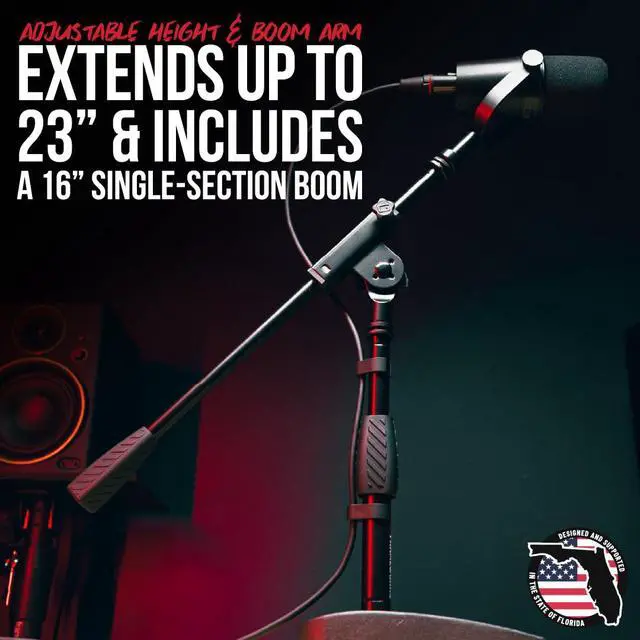 Desktop & Kick Drum Functionality: Short microphone stand with a weighted base for balance and stability, perfect for desktop and kick drum applications