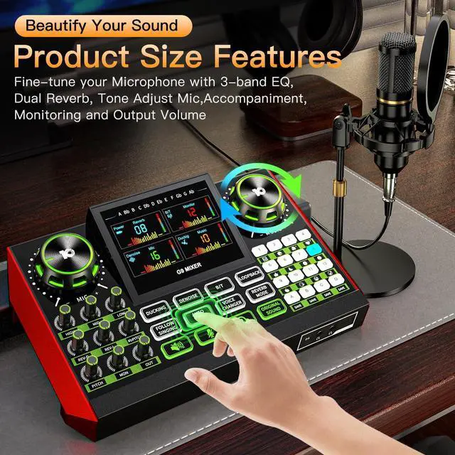 G9 Podcast Microphone Bundle with Live Sound Card Audio Mixer, Podcast Equipment Bundle Sound Board with 3.5 mm Condenser Microphone for Pc/Phone Live Streaming Singing Gaming, Voice Changer, Denoise