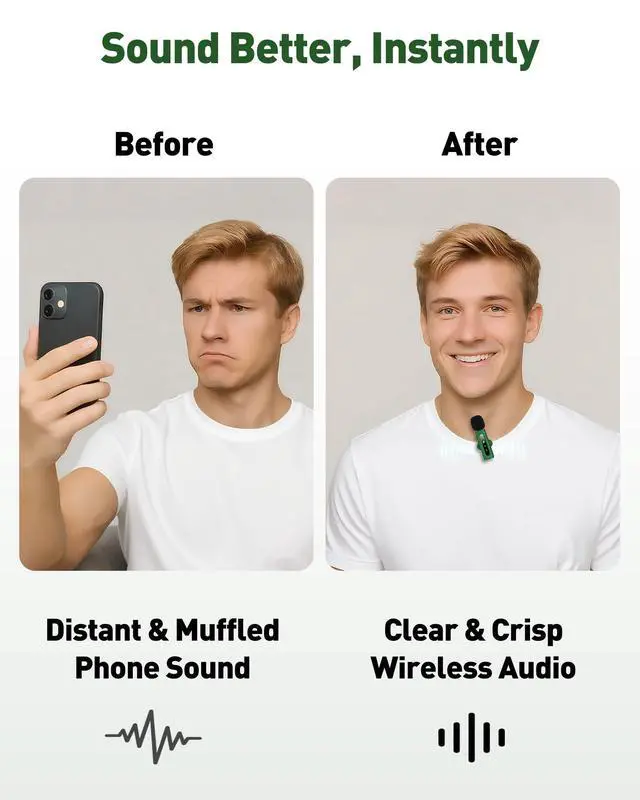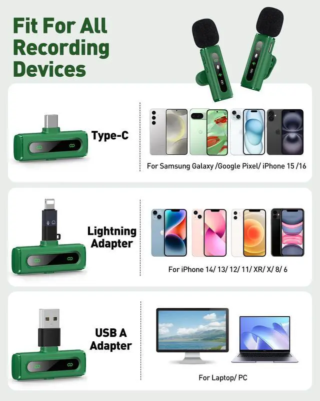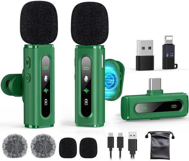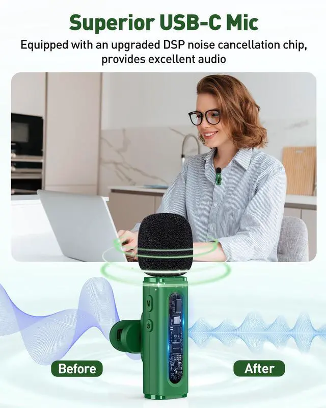 USB C Lavalier Microphone Wireless Mini Mic for Type-C Android Phone/Tablet/PC Video Recording Clip-on Mics with Rotatable Clip&Denoise Recording, Ideal for Vlog Tiktok Youtube Content Creator, Green