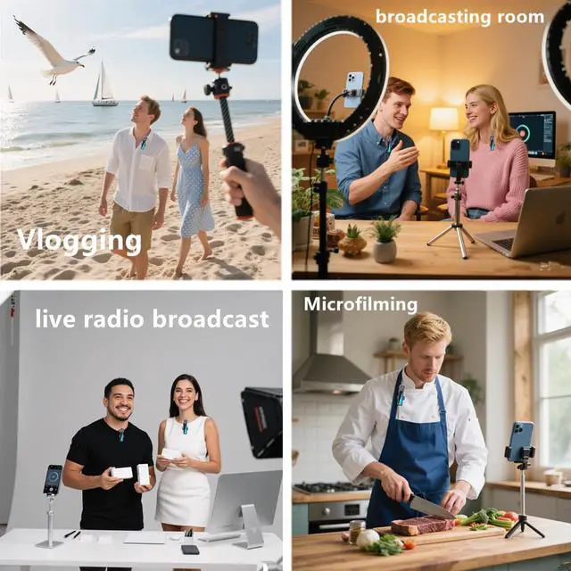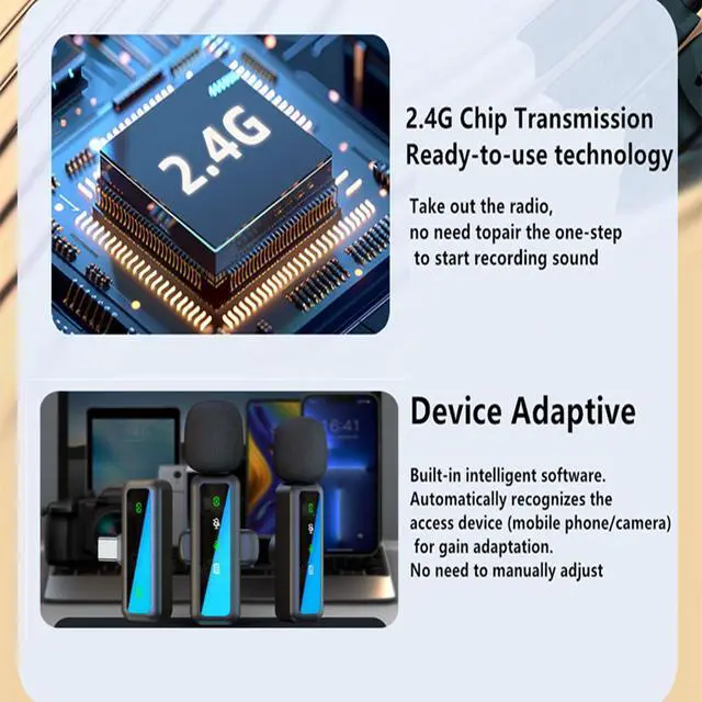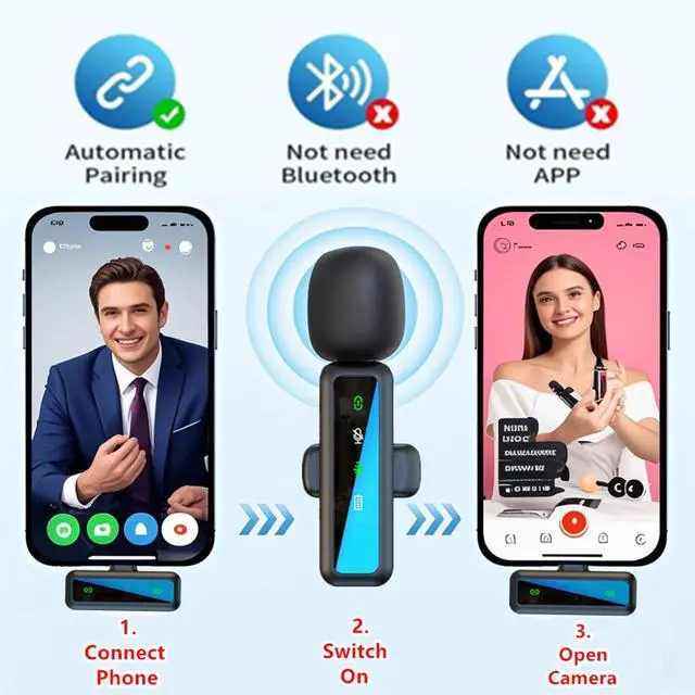 - [application scenario] Mini microphone for iphone adopts a unique lapel clip detachable design, the microphone can be switched left and right to wear position, lapel microphones are compatible with iPhone15/ iPhone16 series, android phones, and also compatible with iPad air 5, laptops, microphone can be used for podcasting, video blogging, teaching interviews, online meetings, live streaming, as well as social media platforms such as YouTube and TikToklavalier microphone wirelessclip on microphone wirelesstiny microphoneclip on microphonewireless microphone for iphone