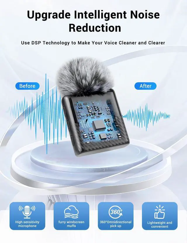 One-click noise reduction, intelligent noise-reduction chip and windproof cover block background noise (wind, traffic, crowd). Real-time sound-picture sync captures clear, natural voice in any noisy environmentno distortion or muffling.