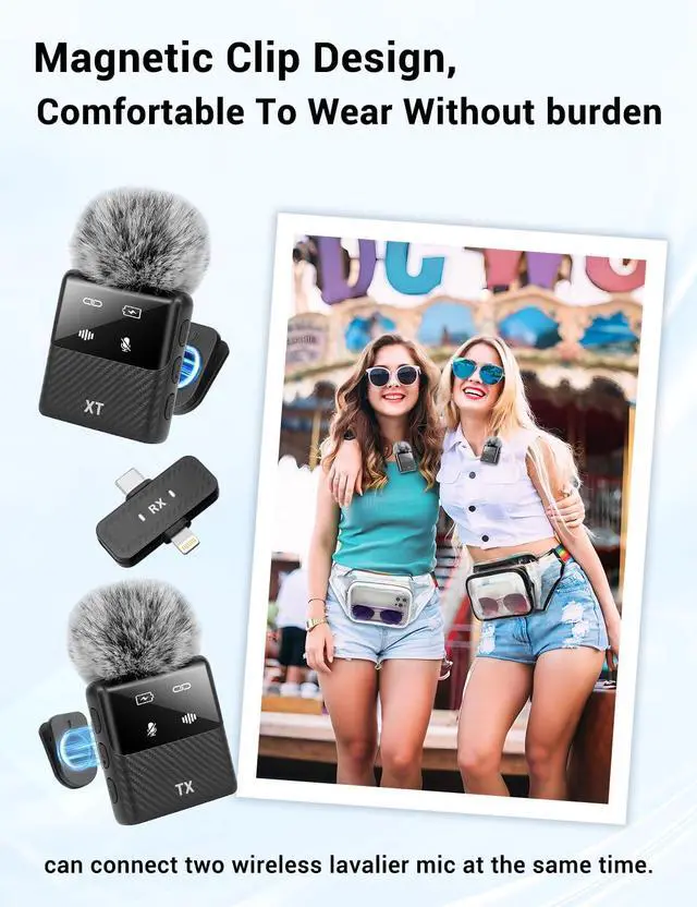 Strong magnetic clip for easy attachment to clothing or handheld use. No tangled cables. 66ft stable transmission lets you move freely without audio loss.