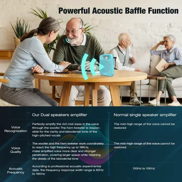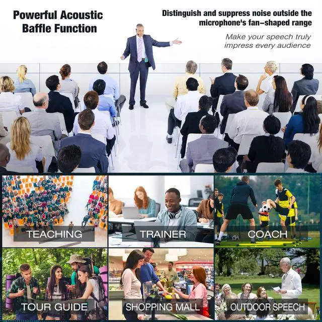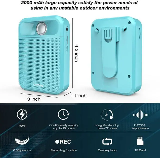 Towevine K700 mini voice amplifier 35dB deep noise reduction, loud enough to boost your voice up for 500-1000 people to hear, amplify your sound and protect your throat. Suitable for teacher, trainer, singer, coacher, tour guide, shopping mall, presentation, meeting, outdoor speech, etc.