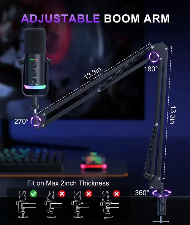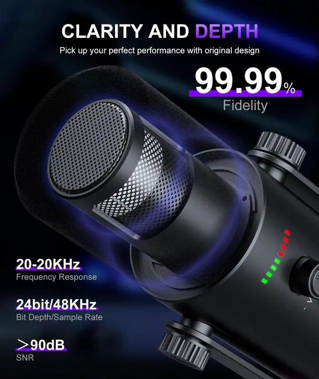 Practical Extra Features (USB Mode Only) A 3.5mm headphone jack offers real-time voice monitoring, so you can check if your audio matches audience expectations. Smooth gain and volume knobs let you adjust levels easily, cutting down post-production work.