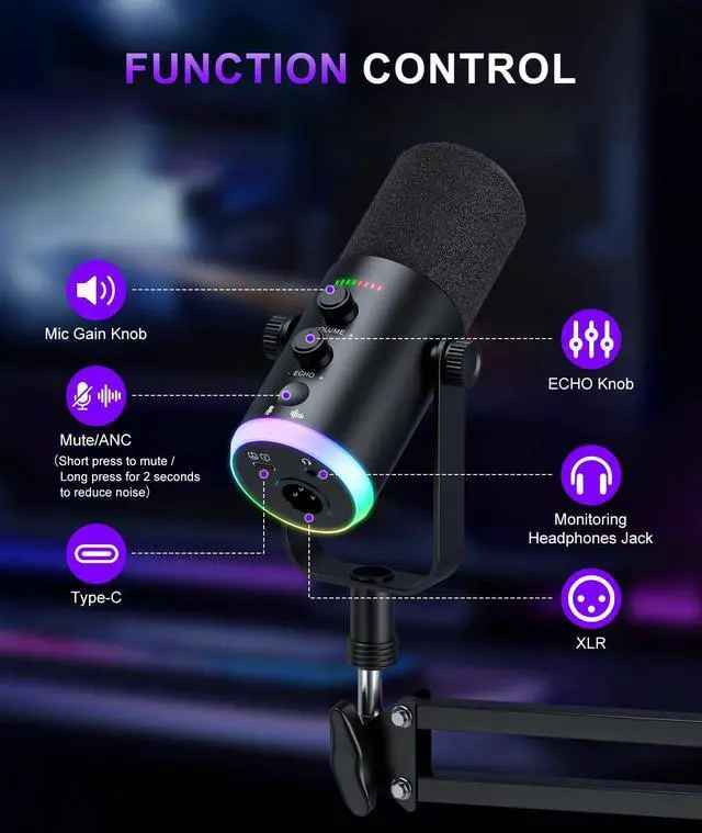 USB Plug-and-Play & Touch Mute No complex setupjust plug in the USB cable and go, ideal for beginner creators and casual podcasters. The touch-sensitive mute button enables instant muting for privacy during streams. Note: Function keys work only in USB mode, not XLR mode.