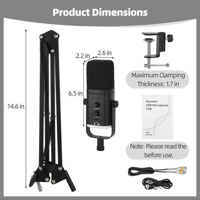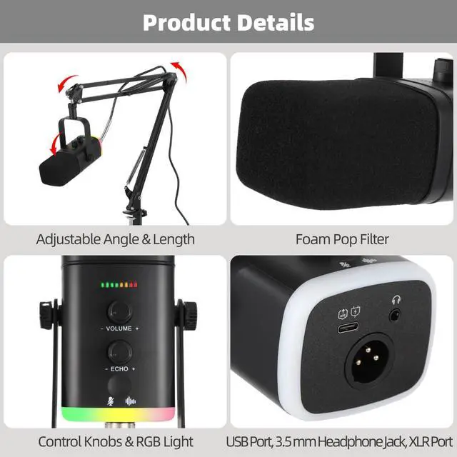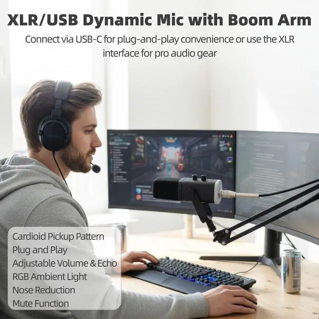 Streamline Your Professional Recording Setup: Connect via USB-C for plug-and-play convenience or use the XLR interface for pro audio gear; includes a sturdy boom arm for flexible positioning; suitable for podcasting or vocals