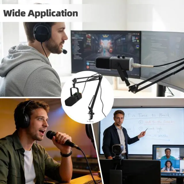 Monitor Your Audio in Real Time: Plug your headphones into the 3.5mm jack for zero-latency monitoring; the adjustable cantilever stand attaches securely to your desk; serves as a practical present for streamers or creators