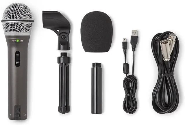 Dynamic handheld microphone with XLR and USB-C Plugs directly into any computer with a USB-C interface Includes Tripod Desktop Stand, Tripod Extension, Mic Clip, Windscreen, USB-C Cable and XLR Cable