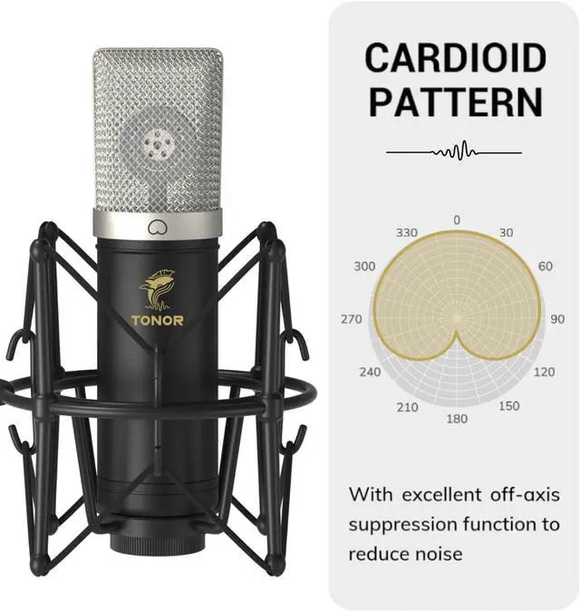 Gold-plated 14mm Large-diaphragm: The gold-plated large-diaphragm condenser cartridge makes the sound range of low and high frequency wider and the sound quality more exquisite. Smooth 20Hz-20KHz frequency response, low distortion, giving you better sound quality. Excellent for streaming, recording, gaming, podcasting, voice over, home studio, etc.
