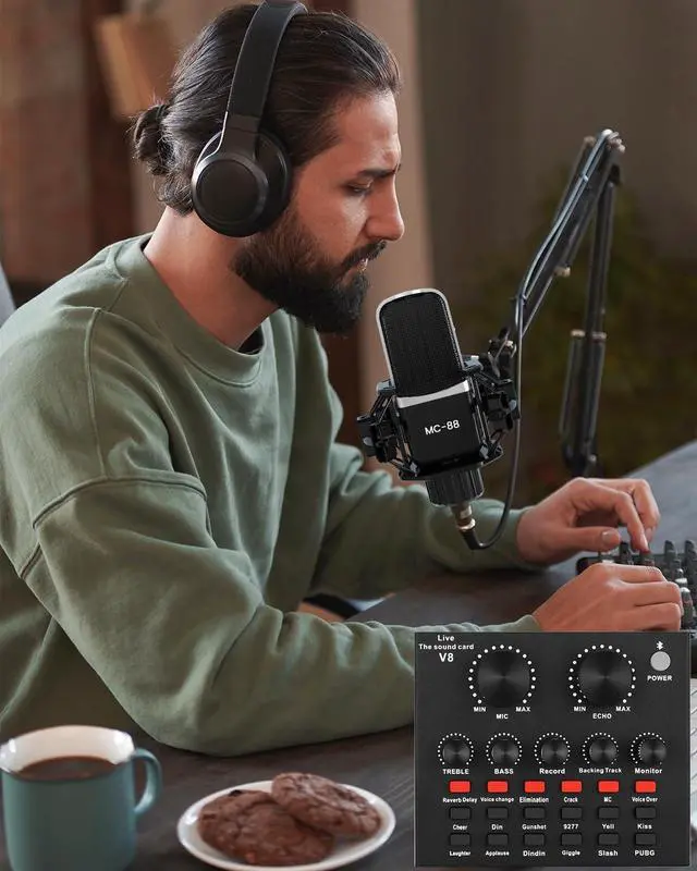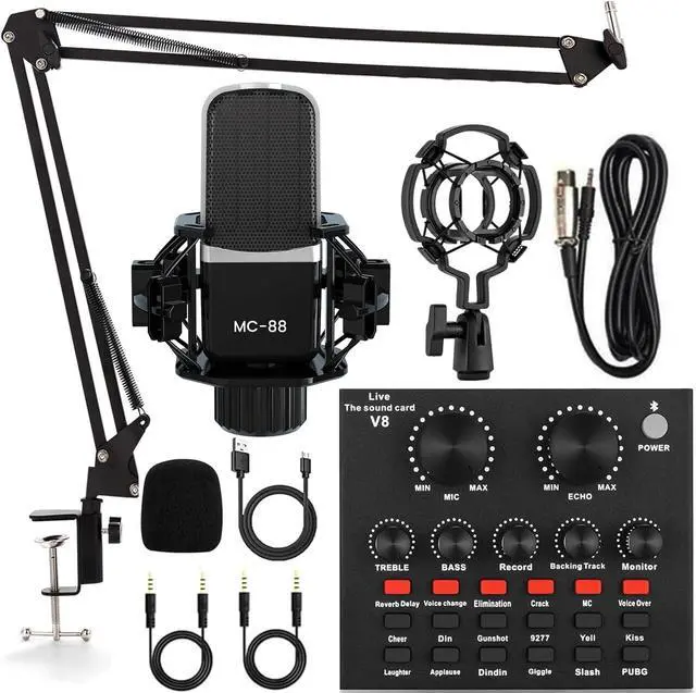 [Elevate Your Audio Instantly]--Experience studio-quality recording for two with our comprehensive podcast bundle. It includes two premium metal microphones and two sturdy boom arms, powered by the newly designed V8 Audio Interface. This all-in-one solution integrates essential controls into a single panel, offering rich features and precise adjustments to optimize your voice. Truly plug-and-play with no drivers required this single set meets all your podcasting needs.