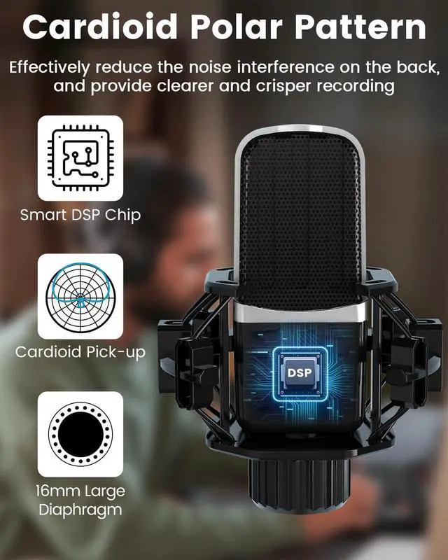 [Broadcast-Grade Clarity]--Equipped with the latest professional sound chipset and cardioid pickup pattern, our microphones capture your voice with pristine accuracy and minimal background noise. Perfect for podcasts, vocals, voiceovers, and streaming.