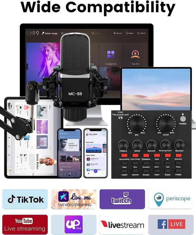 [Rich sound effects]--This podcast kit provides four voice changers (female, male, child, and monster) to customize your voice, and enjoy 12 fun sound effects such as applause, laughter, and cheers. Enhance your live broadcast atmosphere and make your content more attractive!