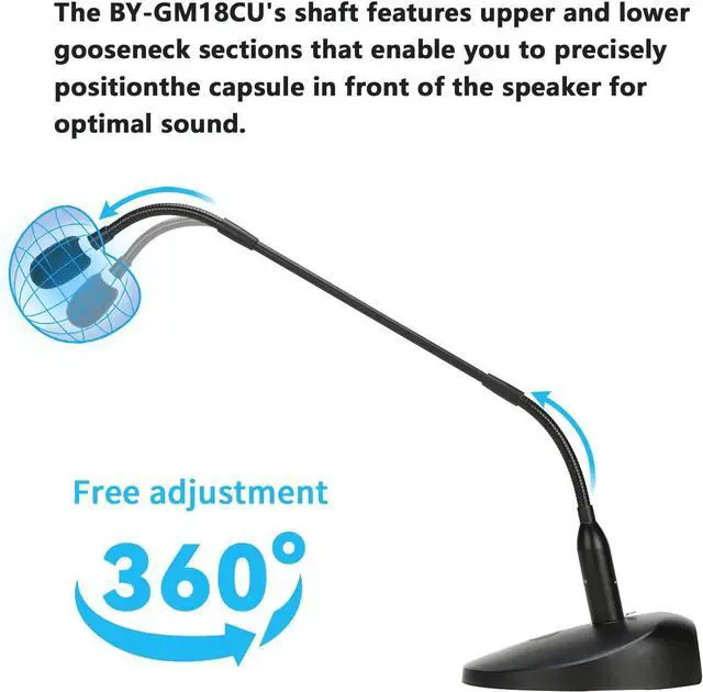 Adjustable Gooseneck Mic: 18-inch bi-fold gooseneck offers more convenience. You can adjust the microphone direction and angle easily and conveniently to cope with desktops of different heights and widths