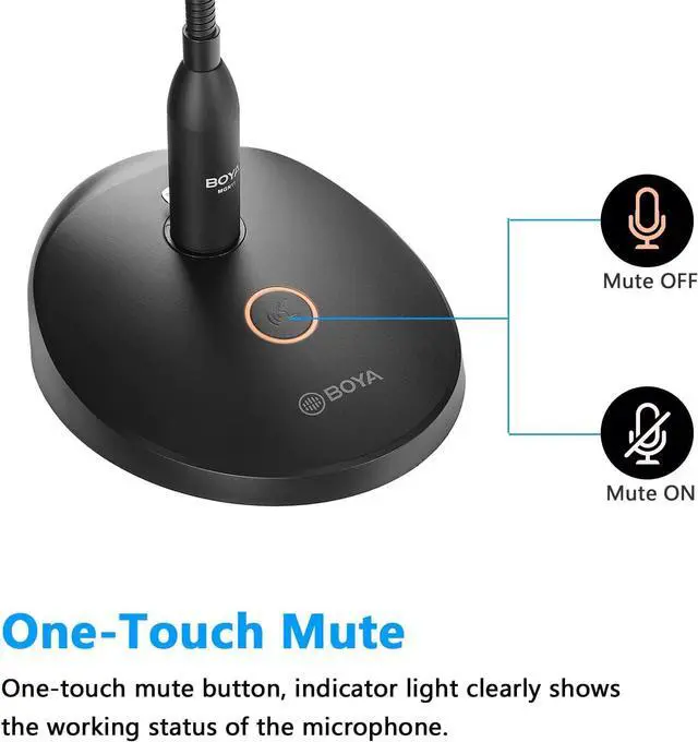 One-Touch Mute: One touch to turn on talk/mute, LED lights to indicate the working status of the microphone