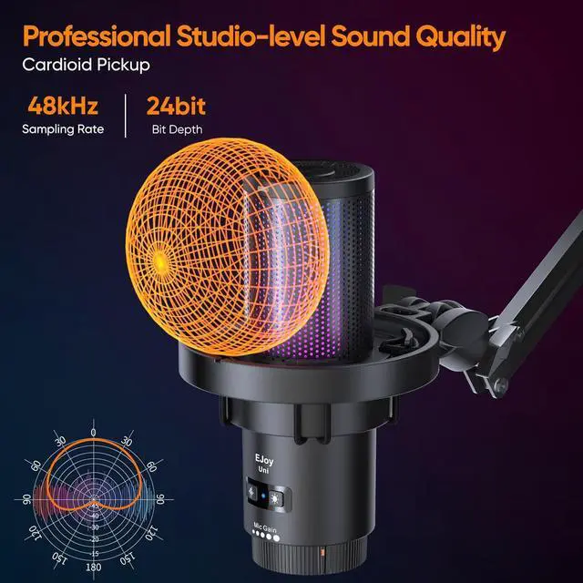 Controllable RGB Lighting: The microphone for pc has amazing dynamic RGB lighting effects. Short press to switch the three lighting effects of breathing light/dynamic gradient/audio dynamic. The color is randomly switched every 3s, and the seven colors are cyclically gradient; at the same time, It can also switch colors according to the sound volume, bringing stunning visual effects to your game live broadcast or other live broadcasts, providing an immersive gaming experience and attracting more viewers.