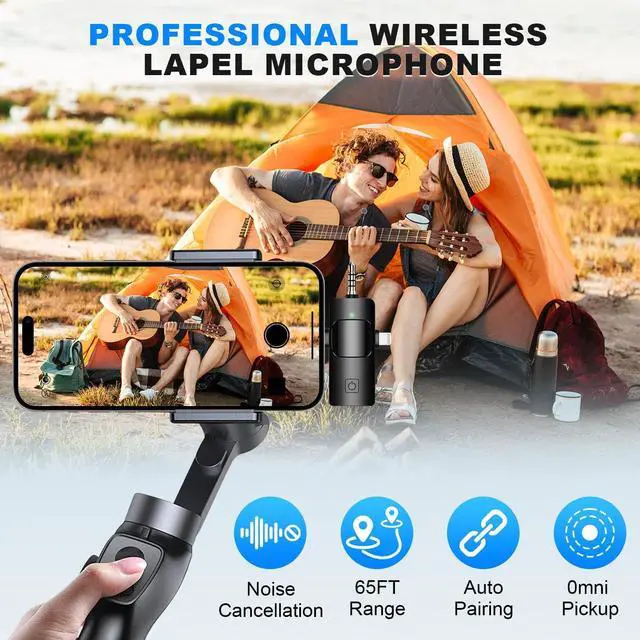 Stable Wireless Transmission: The wireless lavalier microphone requires no cables and provides a stable audio signal up to 65 feet. You can hold it by hand or clip it on your shirt. In addition, the lapel microphone equipped with dual windproof sponges, it maintains exceptional performance even in windy conditions.