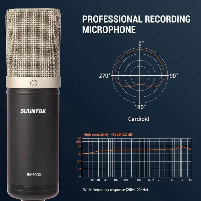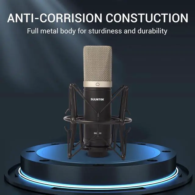[Cardioid Polar Pattern] Adopting the cardioid pickup pattern, the condenser microphone can accurately capture the sound in front of the microphone and effectively reduce the back and side noise, meaning speaking face to the SUUNTOK logo for better effect.