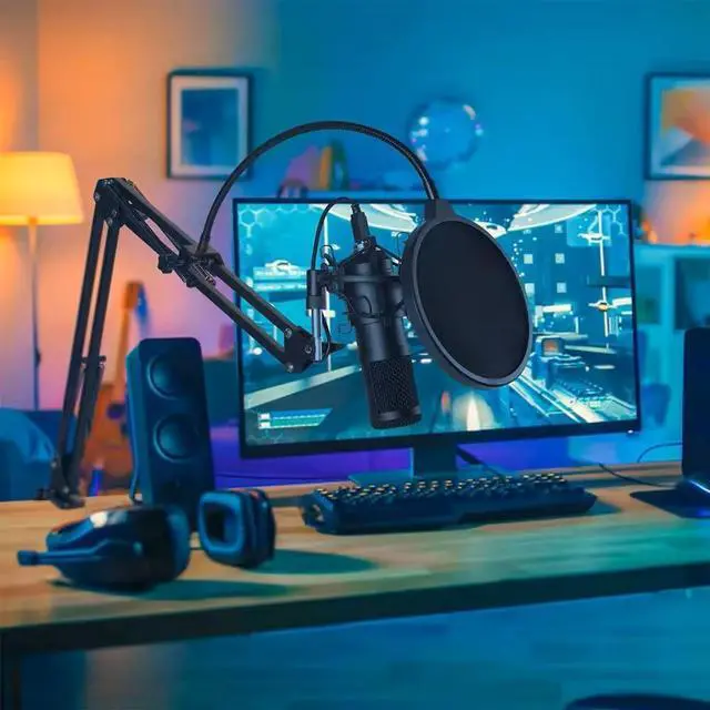 Professional Accessories IncludedEnhance your recording experience with our premium studio microphone kit. Complete with a sturdy scissor arm stand, double pop filter, and high-quality USB cable, this set has everything you need for top-notch sound production. (Keywords: studio microphone kit, scissor arm stand, double pop filter)