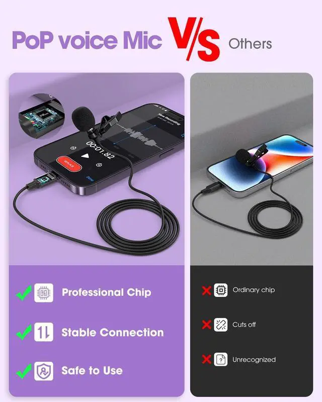 Excellent Performance Omnidirectional Mic - The lapel microphone for iPhone is made of professional grade premium materials, with the professional sound chip and omnidirectional pickup pattern, it can capture the clear sound around the microphone to help you finally create high quality recording on your iOS devices. This podcast microphone performs much better than the built-in microphones of the iOS devices. Ideal for live broadcast, audio & video recording, interview, vlogging, podcast.