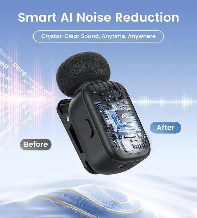 [AI Noise Reduction for Clear Audio] Equipped with a smart AI chip, this wireless lavalier microphone minimizes background noise while capturing your voice with clarity. The mini microphone is perfect for a variety of recording scenarios, including short video shoots, voiceovers, lifestyle vlogs, etc.
