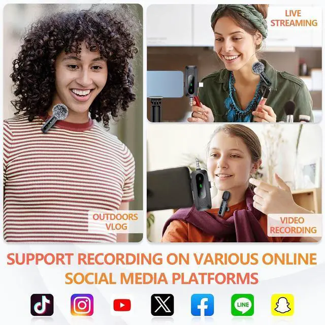 Excellent Compatibility: The wireless microphone comes with a 3 in 1 universal receiver, eliminating the need to use multiple adapters. Whether you are using an Android or iOS device, you can easily connect our microphone, perfect for podcasts, interviews, blogs, vlogs and more