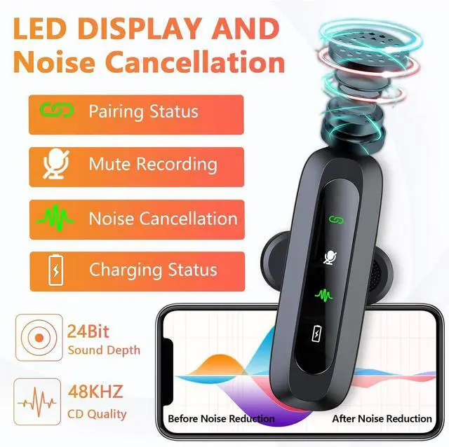 Easy to Operate: Our new podcast microphone features four LED indicators for connection, mute function, noise cancellation and battery status, providing a new use experience. This intuitive display design makes it easier to control your microphone, ensuring that you are always in the best condition when using it