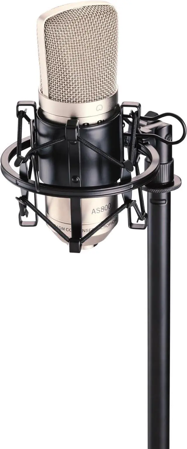 Perfect Fit. Efficient squeeze-to-open clamp controls the adjustable opening that securely holds your large-diaphragm condenser microphone measuring 4248 mm in diameter.