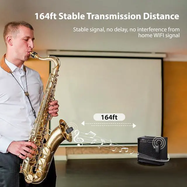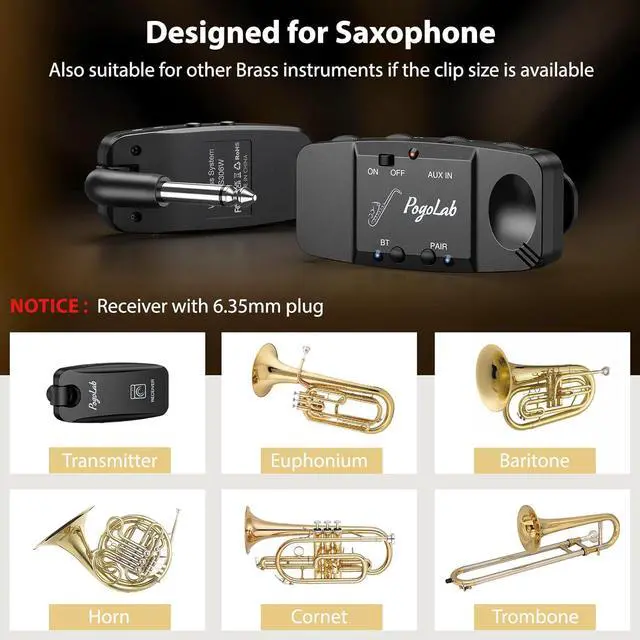 EXCLUSIVE FOR SAXOPHON --- Designed for saxophones and brass instruments such as euphonium, baritone, French horn, and cornet. The receiver has a 6.35 mm plug, which can be connected to speakers and amplifiers. Plus, it comes with a storage bag for easy storage and portability.
