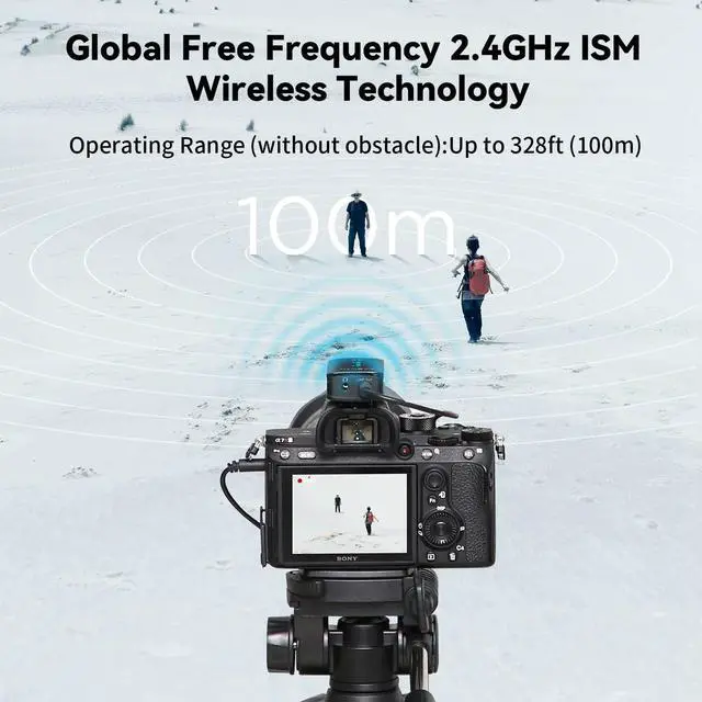 Wireless Distance -- Long Operation Distance --- BOYA wireless microphone BY-XM6 uses the 2.4G hz transmission frequency band and can support up to 328ft of barrier-free transmission distance, and no longer suffers from the trouble of being bound by wires.