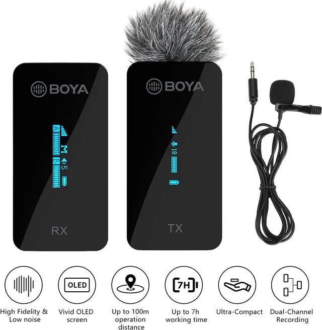 Superior Sound Quality -- The BOYA BY-XM6 is a 2.4GH z adaptive frequency hopping wireless lavalier microphone system, consists of one transmitter and one receiver. Its a perfect sound capturing and delivering solution for one-person vlog, YouTube video, live streaming, interview, recording, etc.